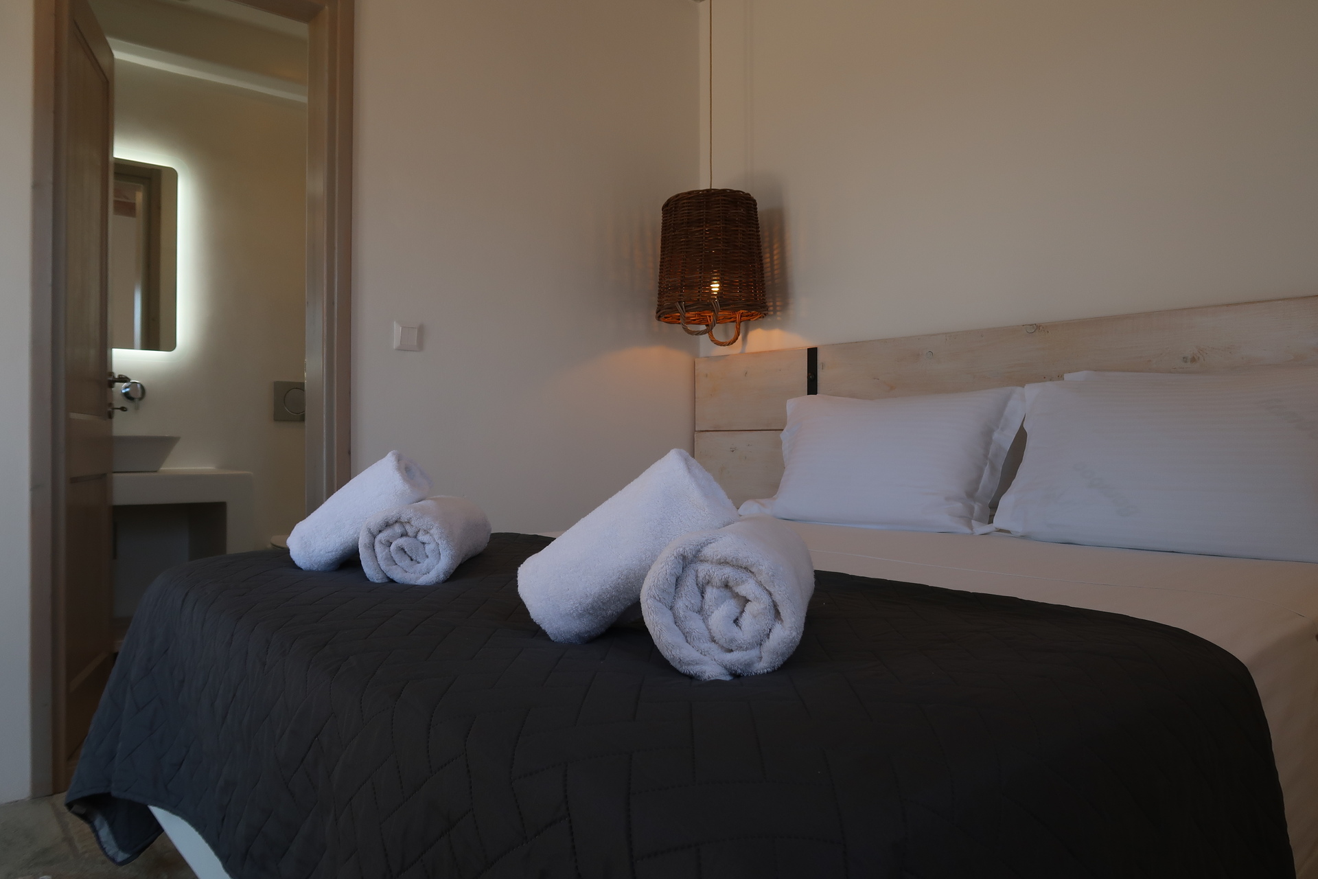 Σχεδιασμένη με προσοχή στην άνεση και την κομψότητα, αυτή η βίλα αποτελεί ένα καταφύγιο διακριτικής πολυτέλειας. Στον επάνω όροφο, σας περιμένουν δύο γαλήνια υπνοδωμάτια, το καθένα διακοσμημένο με στρώματα υψηλής ποιότητας και εκλεκτά κλινοσκεπάσματα, εξασφαλίζοντας ξεκούραστες νύχτες. Και τα δύο διαθέτουν ιδιωτικά μπάνια, όπου ο μοντέρνος σχεδιασμός συναντά την απολαυστική άνεση, δημιουργώντας προσωπικούς παράδεισους χαλάρωσης.